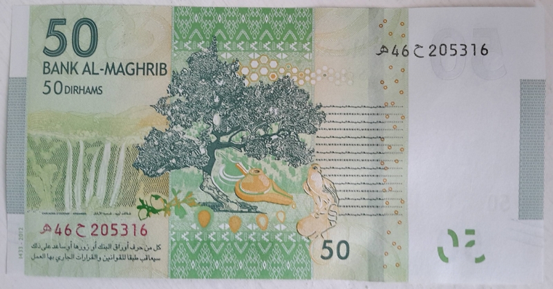 Retro: Albero, frutta e uccelli e panorama delle cascate di Ouzoud.